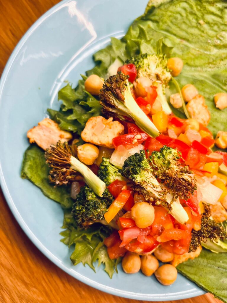 Parsakaalit, quornit ja kikherneet kypsensin tuttuun tapaan airfryerissä. Tästä tuli tosin niin tuhti annos, että parsakaalit jätän ensi kerralla pois kokonaisuudesta. Jos tästä haluaa tehdä nopeamman version, voi myös kikherneet jättää pois ja lämmittää maustetut quornit airfryerin sijaan mikrossa.